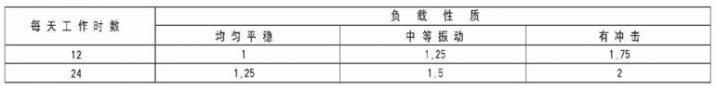 用户可根据实际工作制和负载性质参照服役系数表,计算后确定减速电动机的功率与型号。